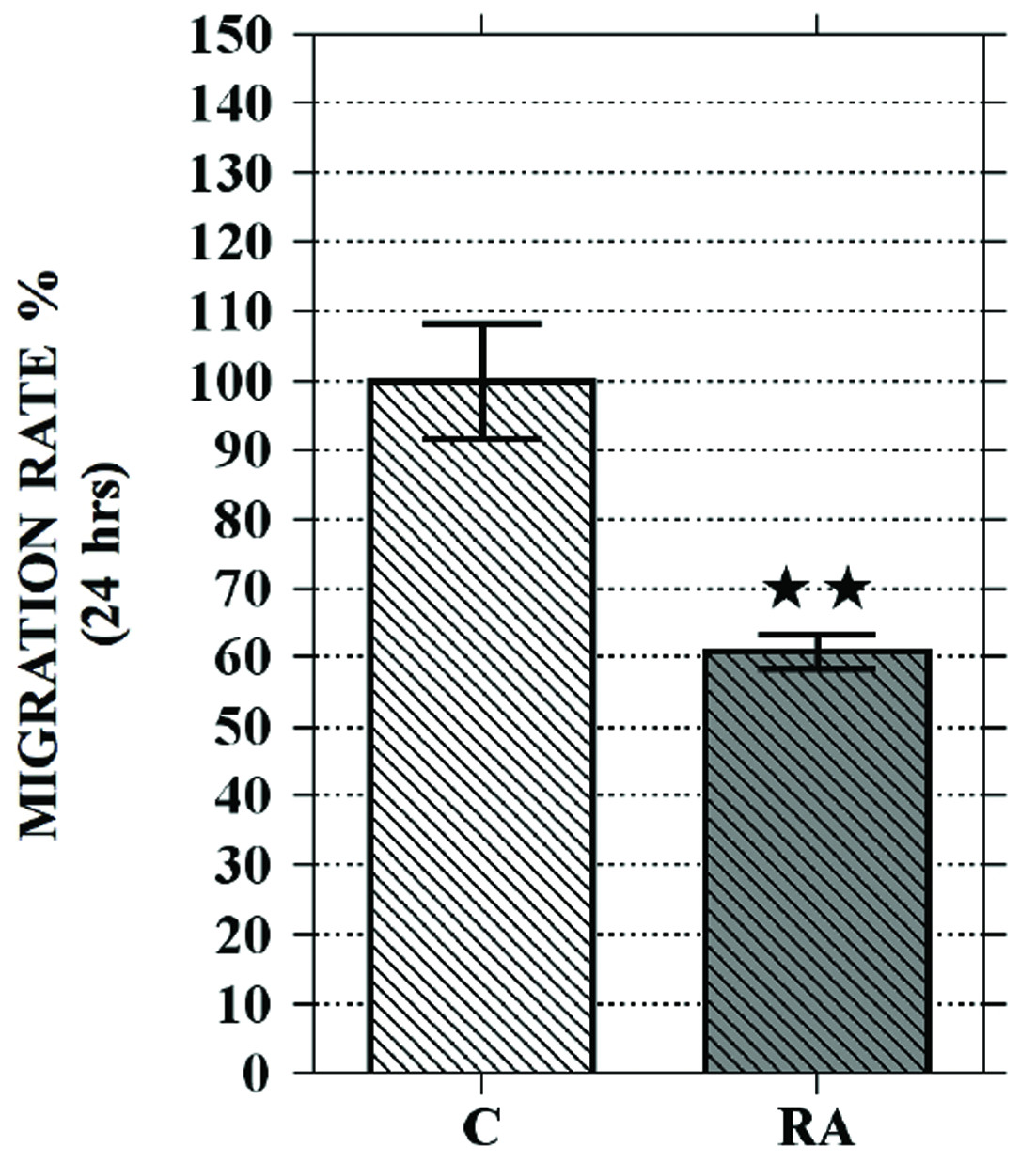 In order to investigate SK-N-SH cell migration capability after RA treatment, a modified wound scratch assay was used [