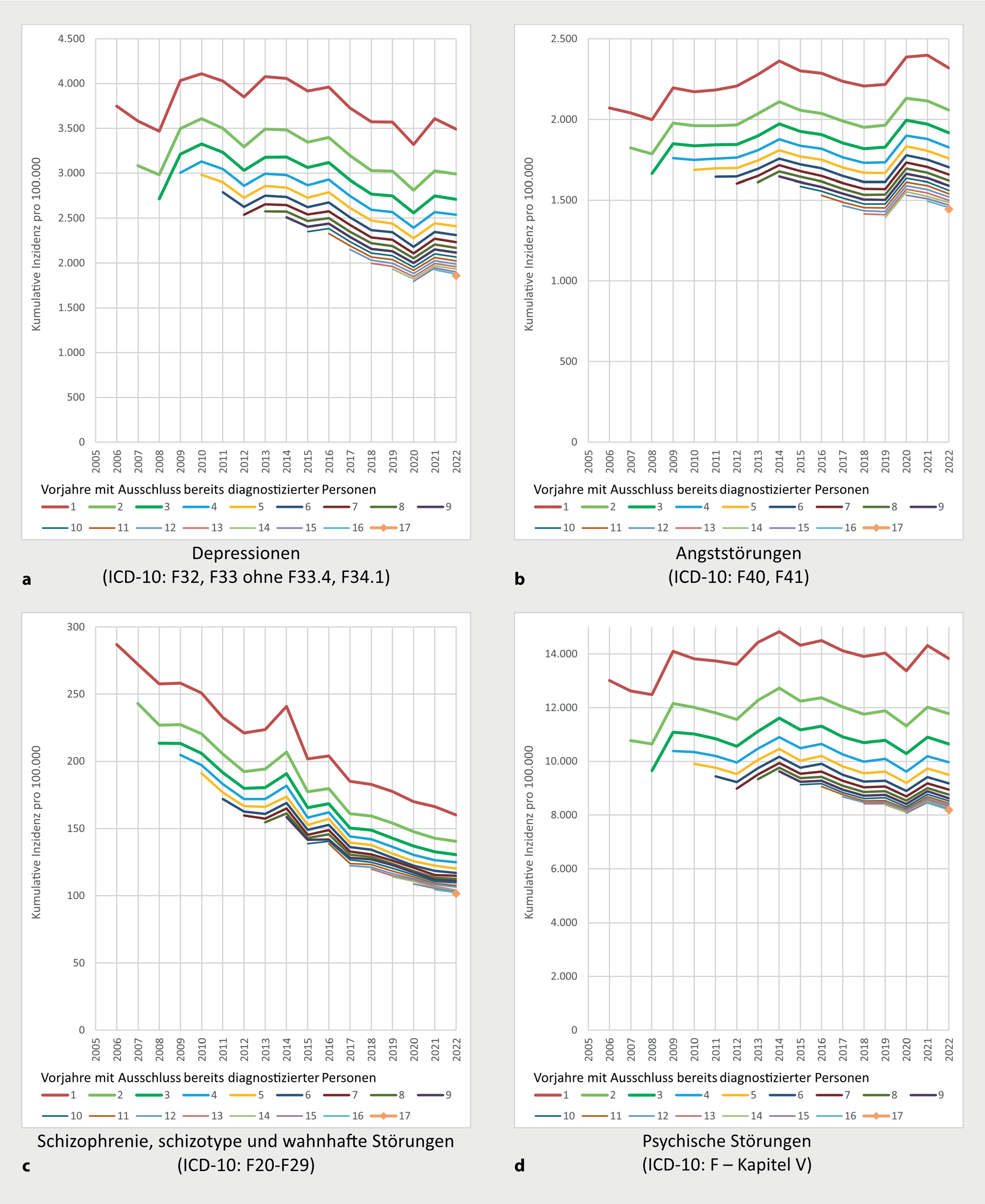 Schätzungen von Inzidenzen psychischer Störungen in GKV-Routinedaten: Methoden und Trends 2006 bis 2022