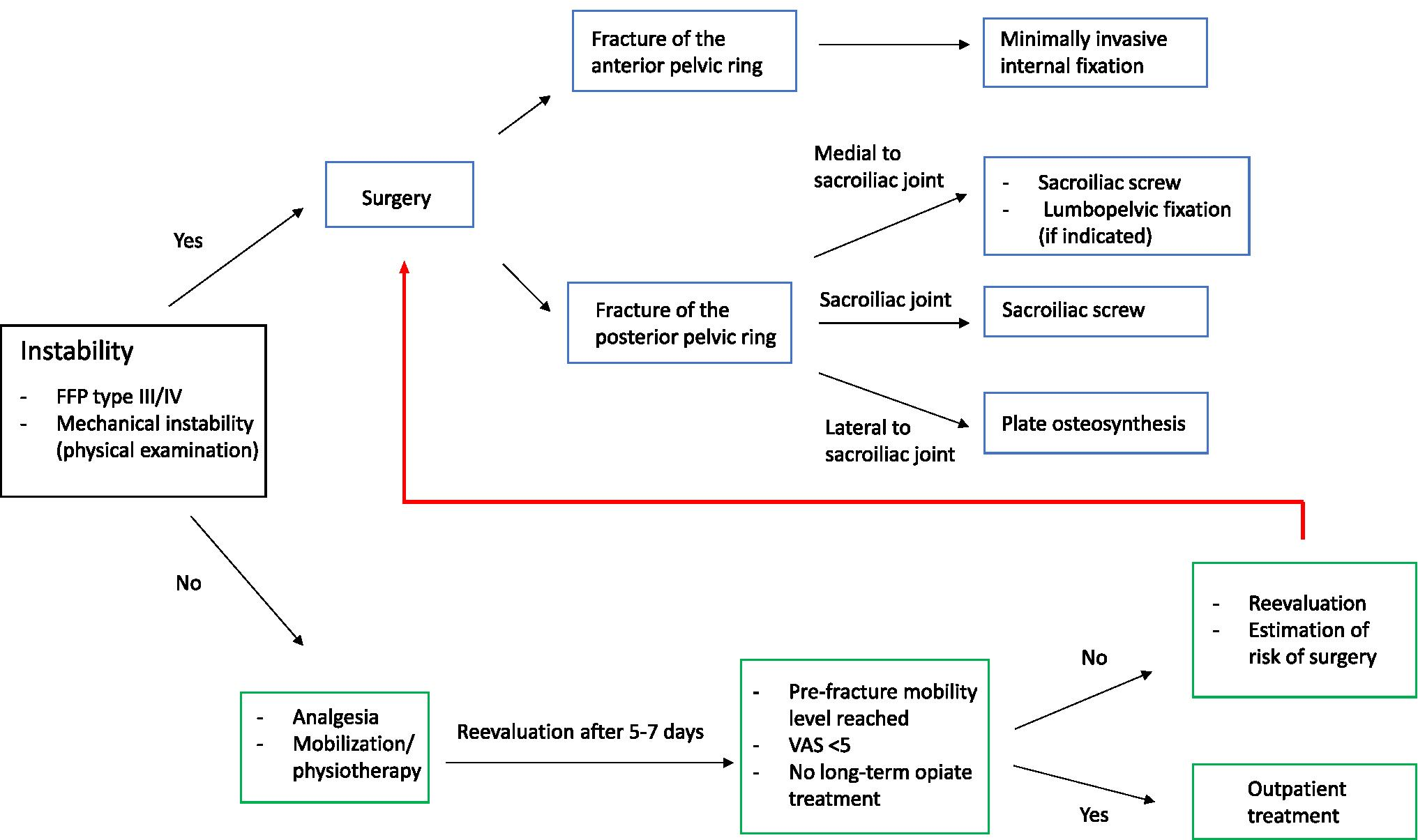 Osteoporosis-associated fragility fractures of the pelvic ring (FFP) are among the most frequent fractures in the elderly population [1]. Due to demographic change and increasing life expectancy, their prevalence has been steadily increasing in the last decades [2]. Despite this fact, relatively little has been known about these fractures, especially compared to osteoporotic hip fractures or vertebral fractures. Recently, a growing number of publications concerning pelvic fractures in geriatric patients can be found in the literature. These studies mainly focus on trauma mechanism, fracture morphology, classification systems, and treatment strategies [3‐7].