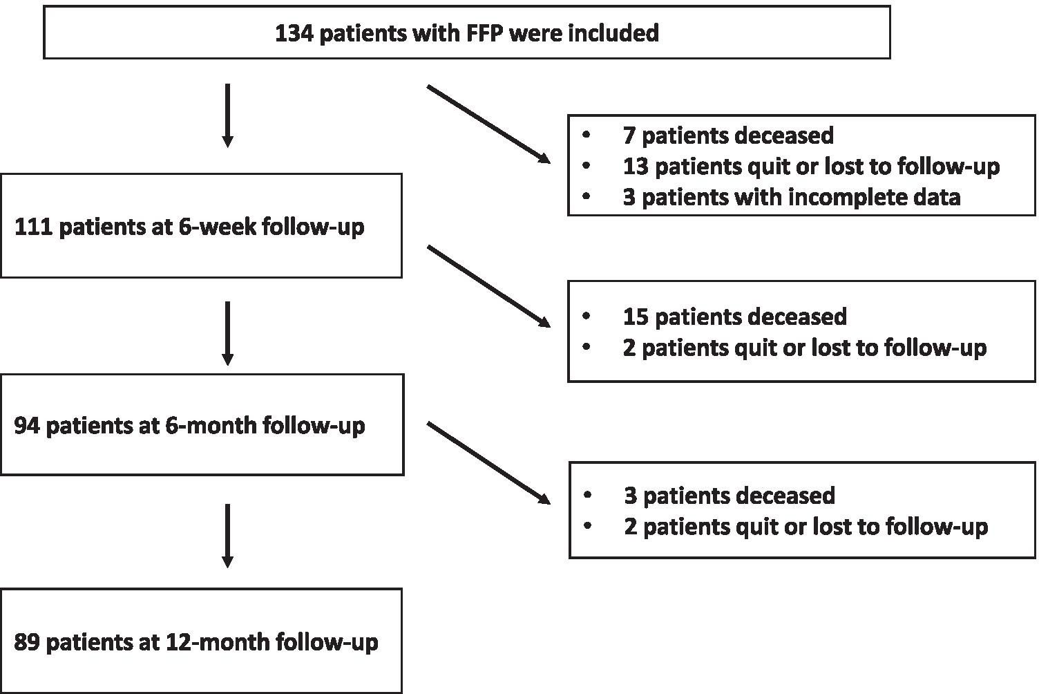 However, little is known about the outcome after FFP. Some investigations have evaluated mortality and functional outcome [8‐10]. Besides those objective facts, another important aspect is the patient-based, subjective evaluation of the outcome, particularly with regard to the patients’ abilities concerning activities of daily living (ADL), self-rated health status (HS), and health-related quality of life (HRQOL) [11]. So far, there are only a very limited number of investigations evaluating the abilities in ADL, HS, and HRQOL after FFP, and, to our knowledge, no prospective studies exist [10, 12‐14].