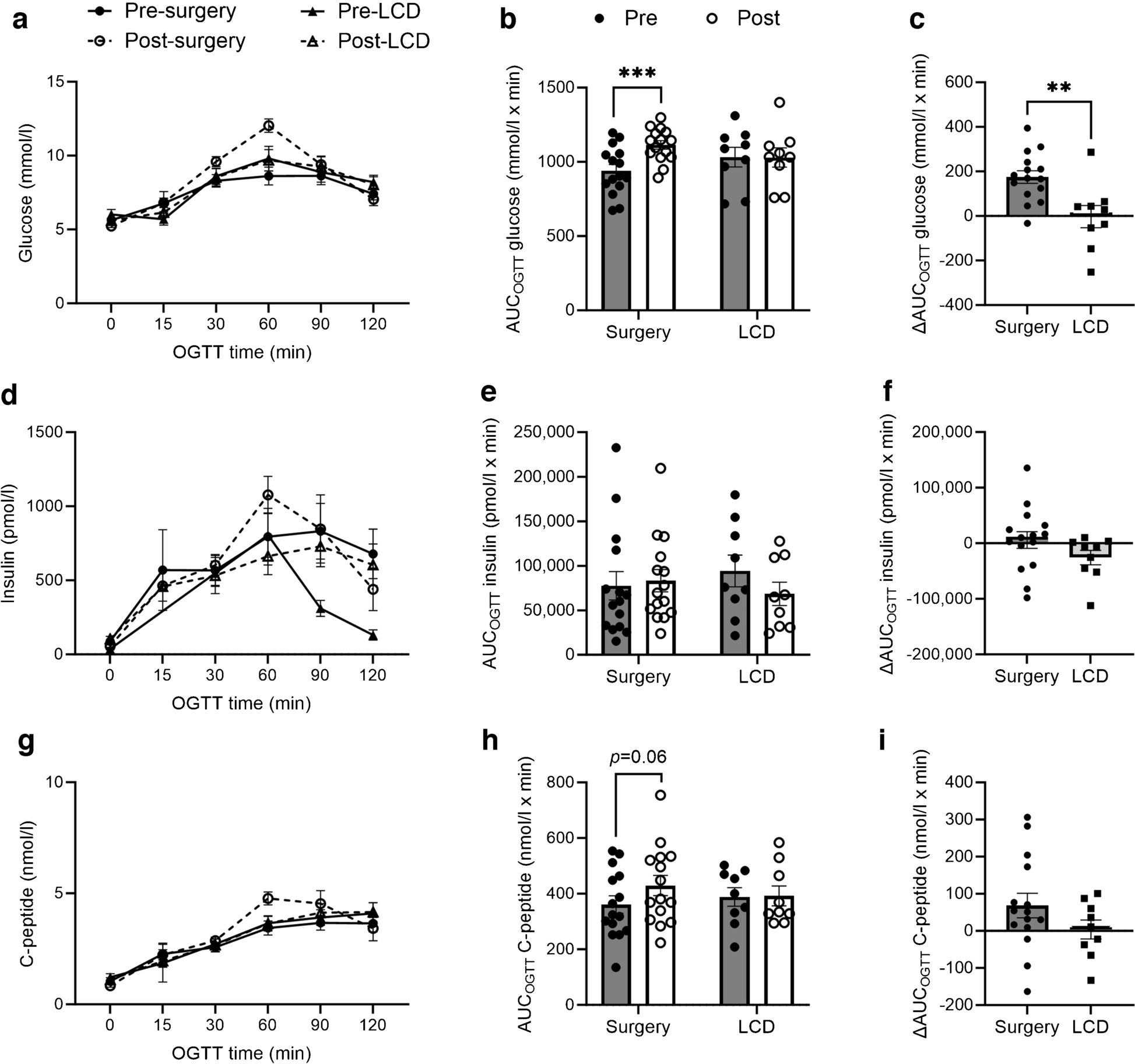 2 h post-OGTT glucosec, mmol/l | 7.4±1.5 | 7.0±1.7 | 8.2±1.4 | 8.0±1.6 | 0.386 |