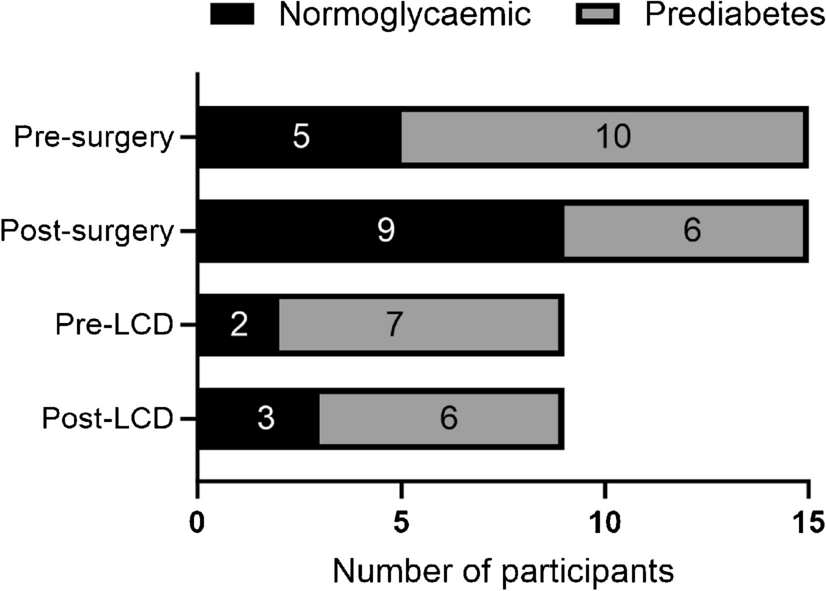 HbA1c, mmol/mol | 35.3±3.4 | 31.1±2.4*** | 35.4±4.8 | 33.6±3.6* | 0.007 |