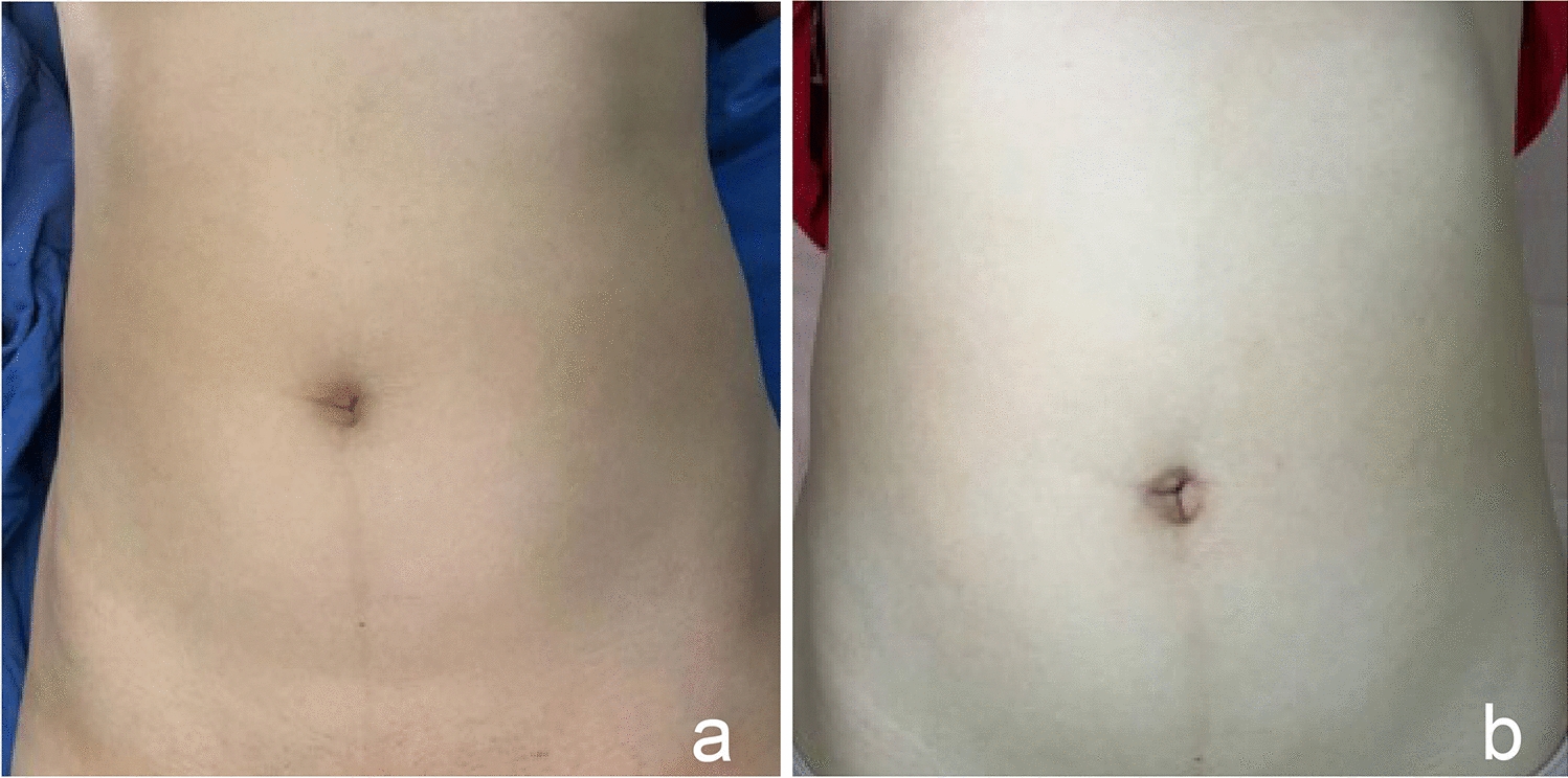Belly button before and after SIL-TAPP. a Belly button before SIL-TAPP. b Belly button after SIL-TAPP