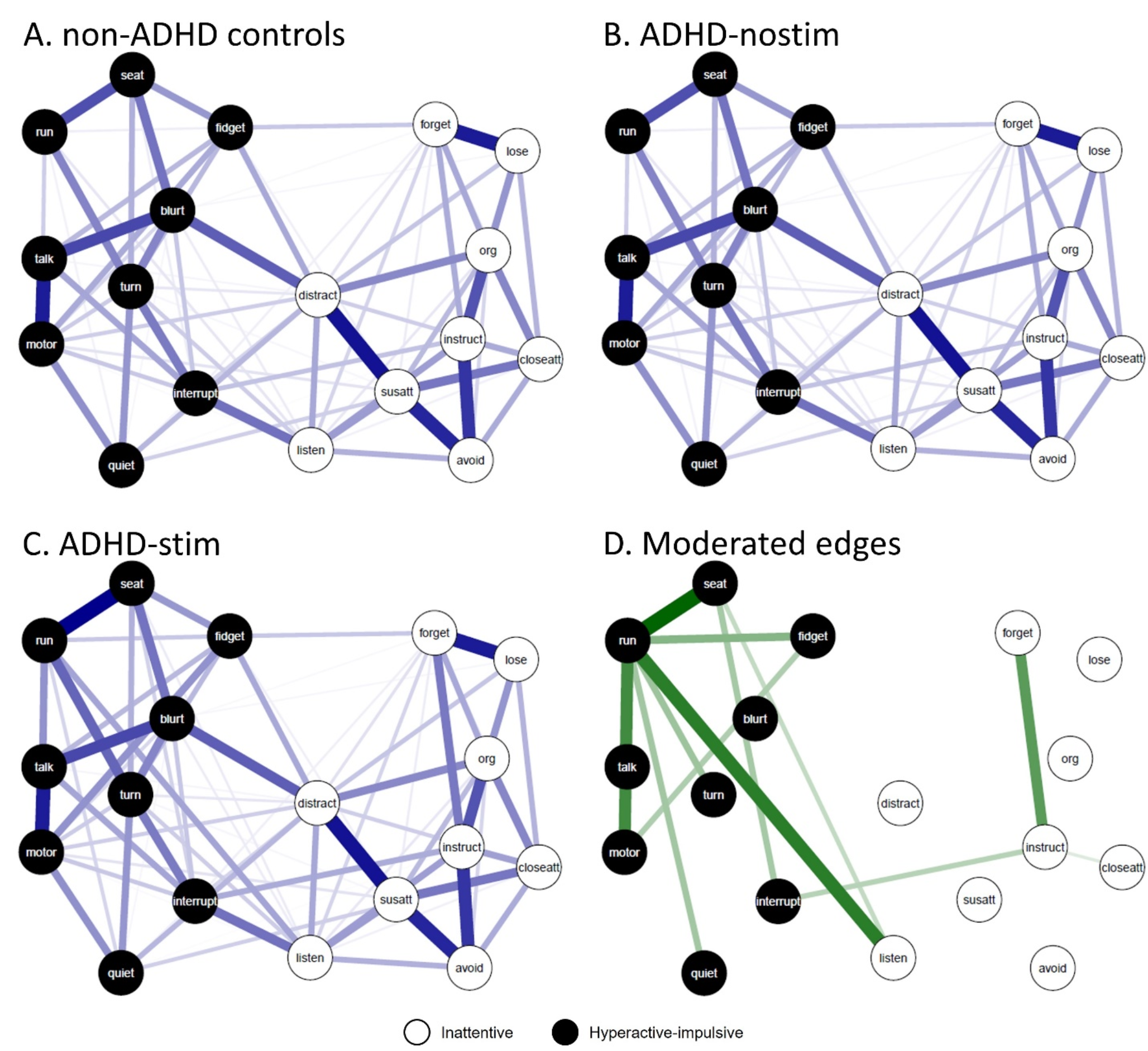 However, the effects of treatment itself on symptom network properties in ADHD remain unexplored. It is essential to increase our understanding of how the relations between symptoms differ between individuals with ADHD that use stimulant medication, compared with those that do not, as this may provide new leads for optimizing treatment approaches and improving outcomes for individuals with ADHD.