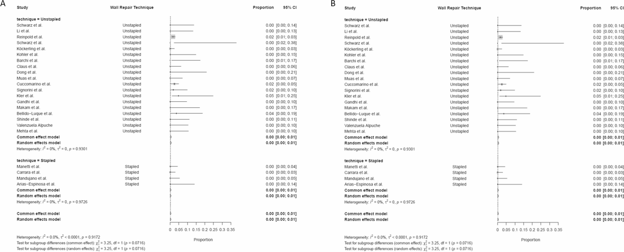The variability in surgical techniques, despite being categorized into clear subgroups, still leaves room for variation in execution. Furthermore, this meta-analysis could not account for the learning curve in the earliest cases, which may have negatively affected outcomes. However, it is reasonable to assume that surgeons developed the necessary skills in an experimental setting before performing surgery on the patients included in each study.