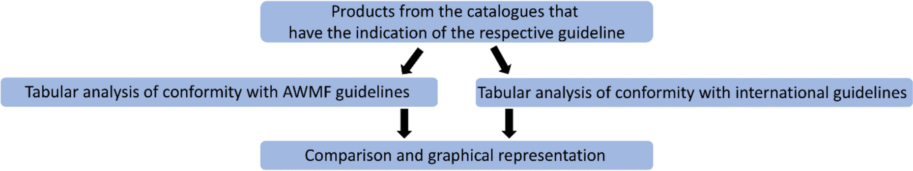 Graphical representation of the methods for comparing the guidelines with the product catalogues in a flow chart
