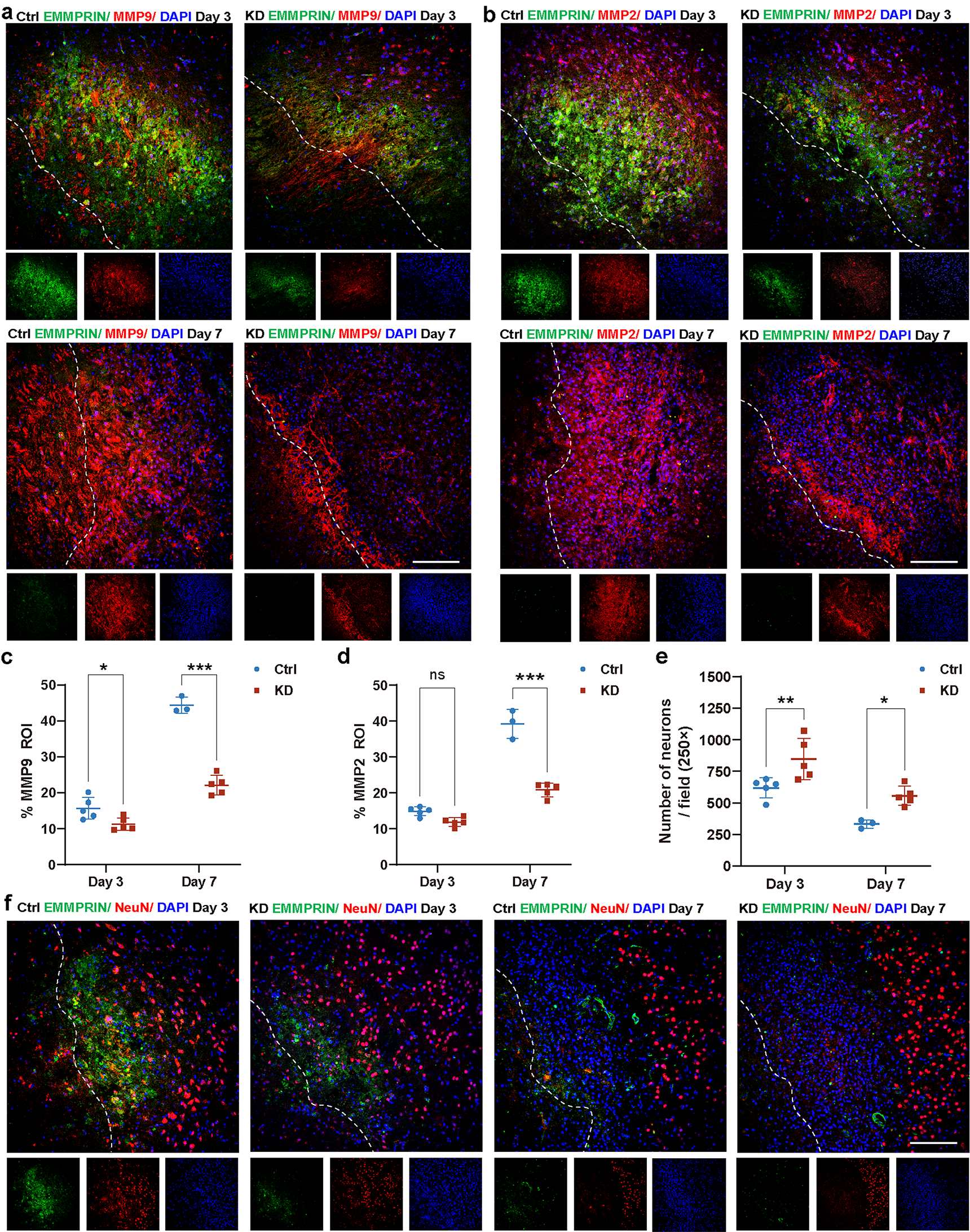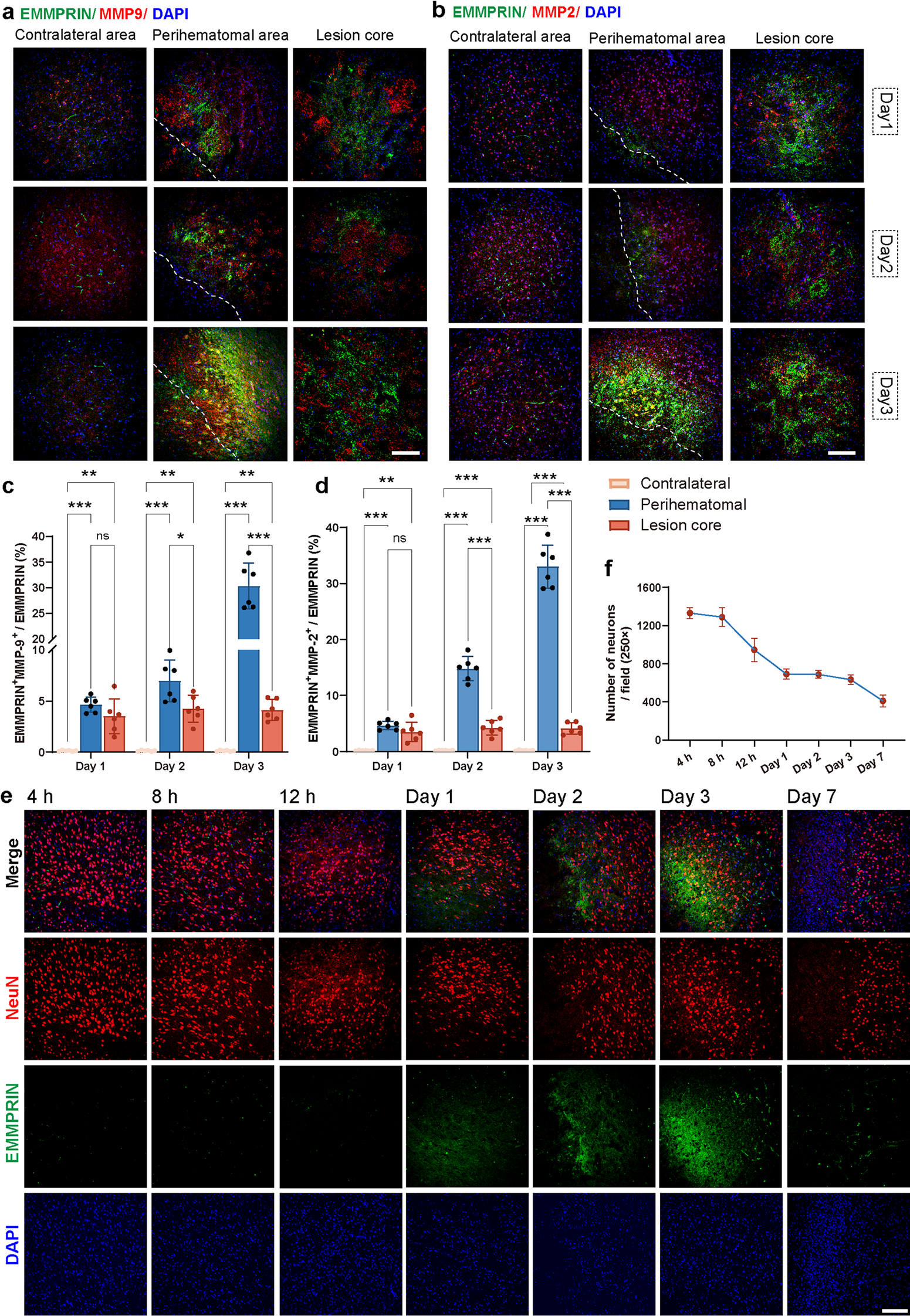 42]. Our findings position EMMPRIN as a key upstream regulator of the proteolytic cascade driving secondary brain injury.