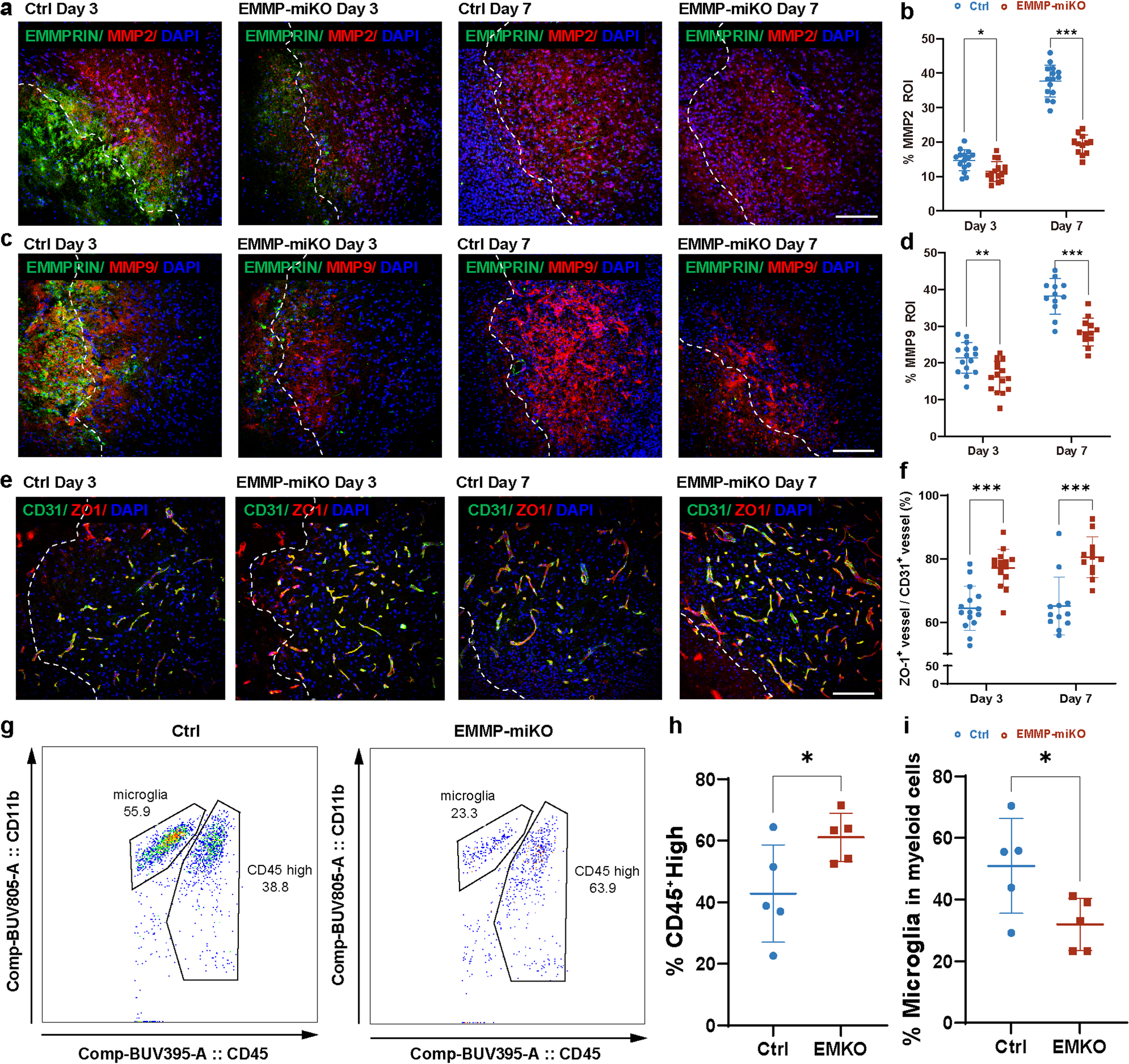 47]; however, our findings reveal that targeting upstream regulators like EMMPRIN within microglia/macrophages may offer broader benefits by modulating both inflammatory and matrix-degradative programs.