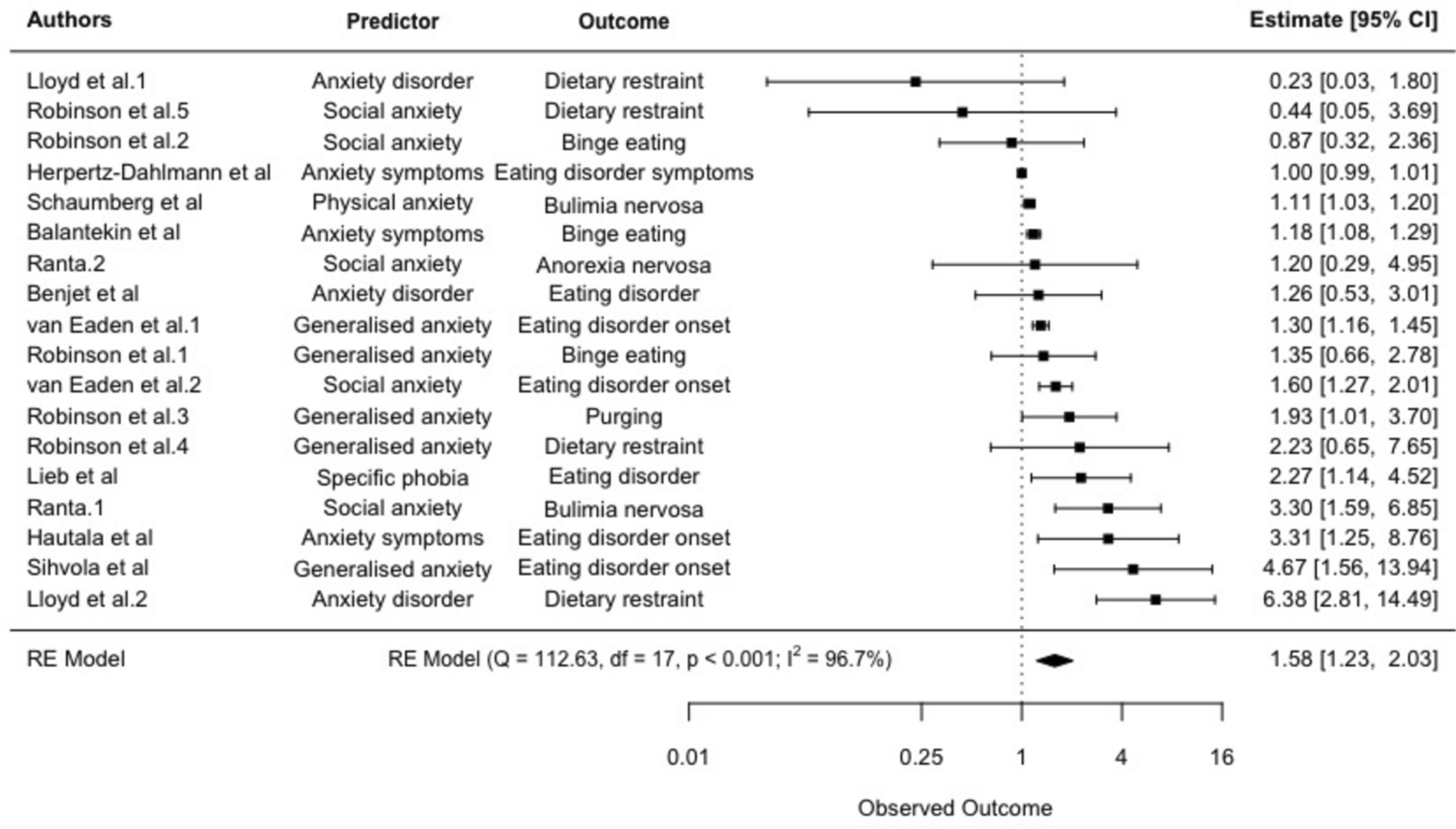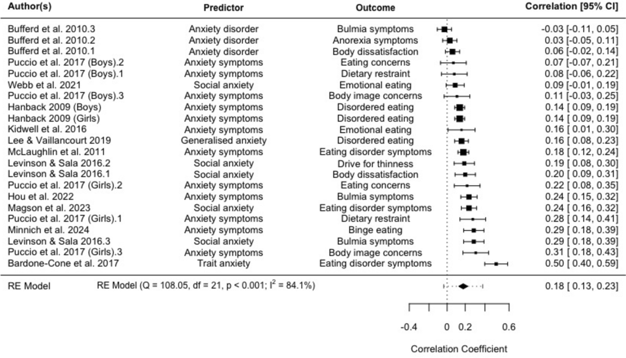 Fairweather-Schmidt and Wade [39] | Australia | 1.15 years (SD = 0.17) | 669 | 100% | NR | Predominantly white | Child Anxiety Sensitivity Index (CASI) & Just Right from the Vancouver Obsessive Compulsive Inventory | EDE interview and Perceived Pressure to be Thin |