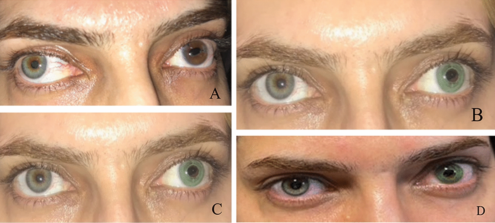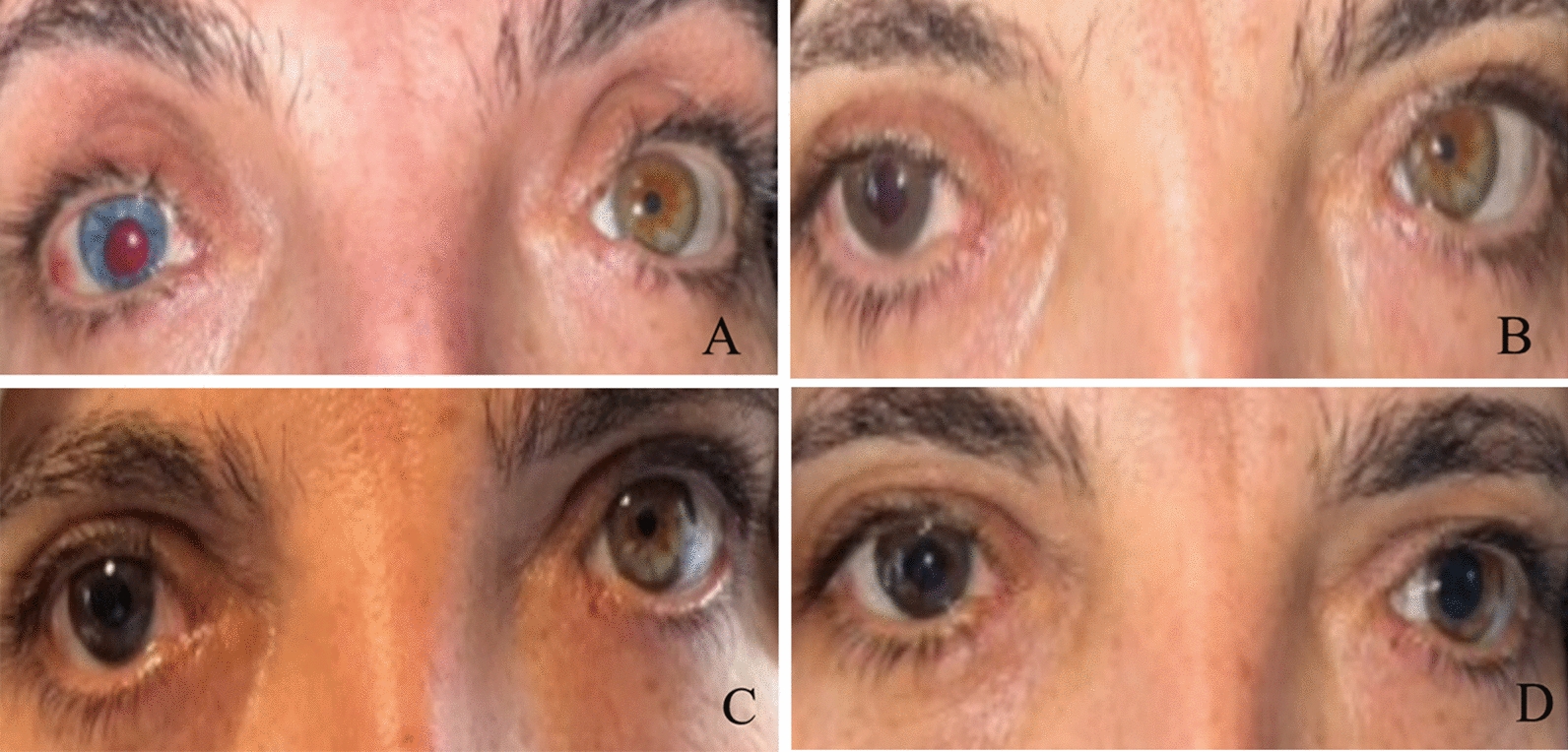 Six months following the procedure, an independent observer assessed the cosmetic result based on pigment stability, level of color similarity to the healthy eye, and created pupil shape and size. This assessment was divided into three categories: excellent (excellent symmetry with the fellow eye and excellent cosmetic appearance), good (symmetrical and acceptable cosmetic appearance), or poor (asymmetrical and unacceptable cosmetic appearance). The patient's reported outcome (level of cosmetic and functional satisfaction) was evaluated and classified as highly satisfied, satisfied, or unsatisfied, according to oral interview and/or written questionnaire, 3 weeks after the procedure (the questionnaire is available as Supplementary Material). During the follow-up period, the stability of pigmentation and the existence of any associated complications were also assessed.