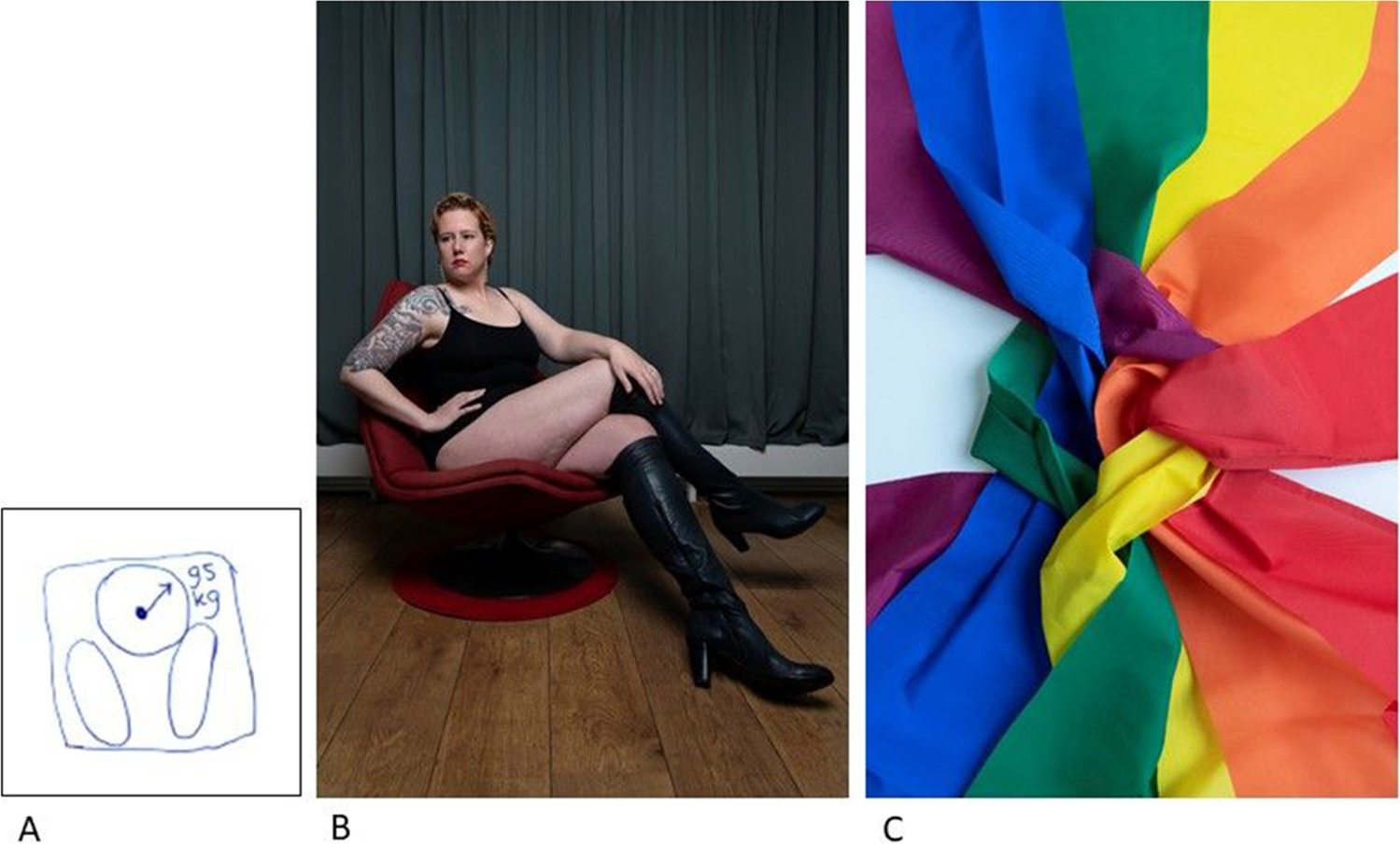We applied a similar approach to analyze the photos. Each photo was analyzed separately, by looking at what was in the photo and what was written in the caption. The first author, ZB, described what could be seen on the photo and then applied codes to the photo and the caption. After all photos were analyzed, the codes were clustered into subthemes and main themes. ZB discussed this process and the emerging themes with EH. Subsequently, ZB and EH compared the themes that emerged from the RPs to ones in the photos, explicitly looking for similar or different metaphors and visual motifs.