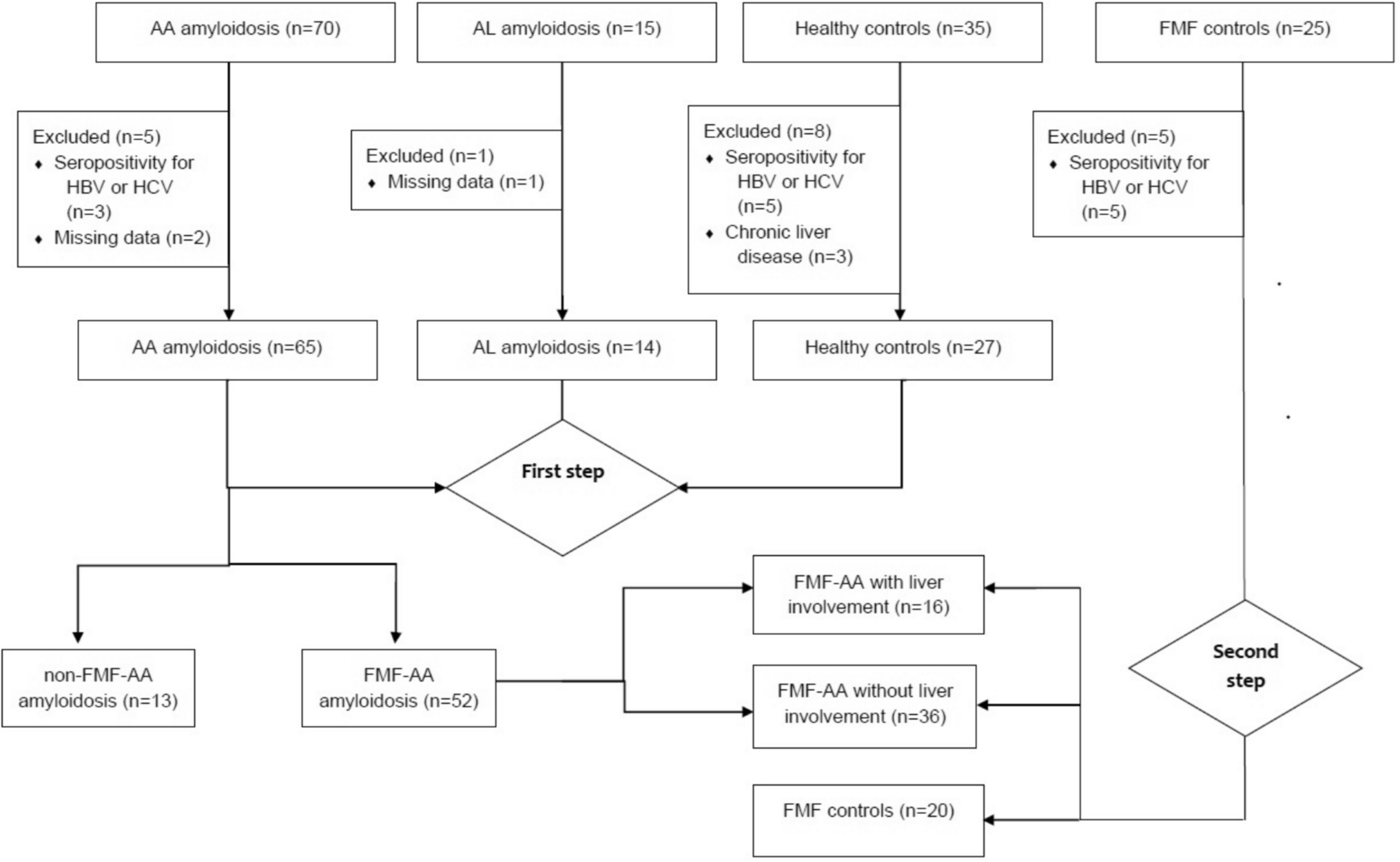 Variables | AA amyloidosis | AL Amyloidosis | FMF-AA | Non-FMF-AA | ||||