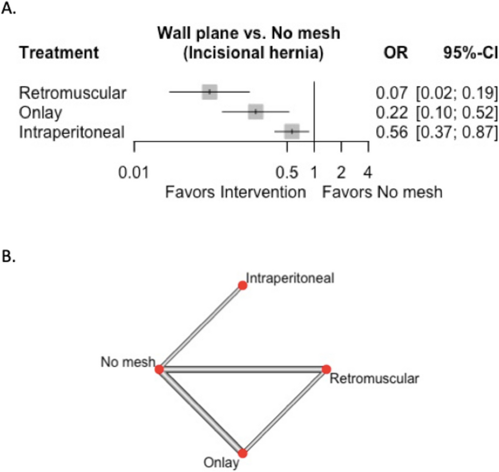Type of mesh and wall plane in prophylactic mesh after stoma closure: A network meta-analysis