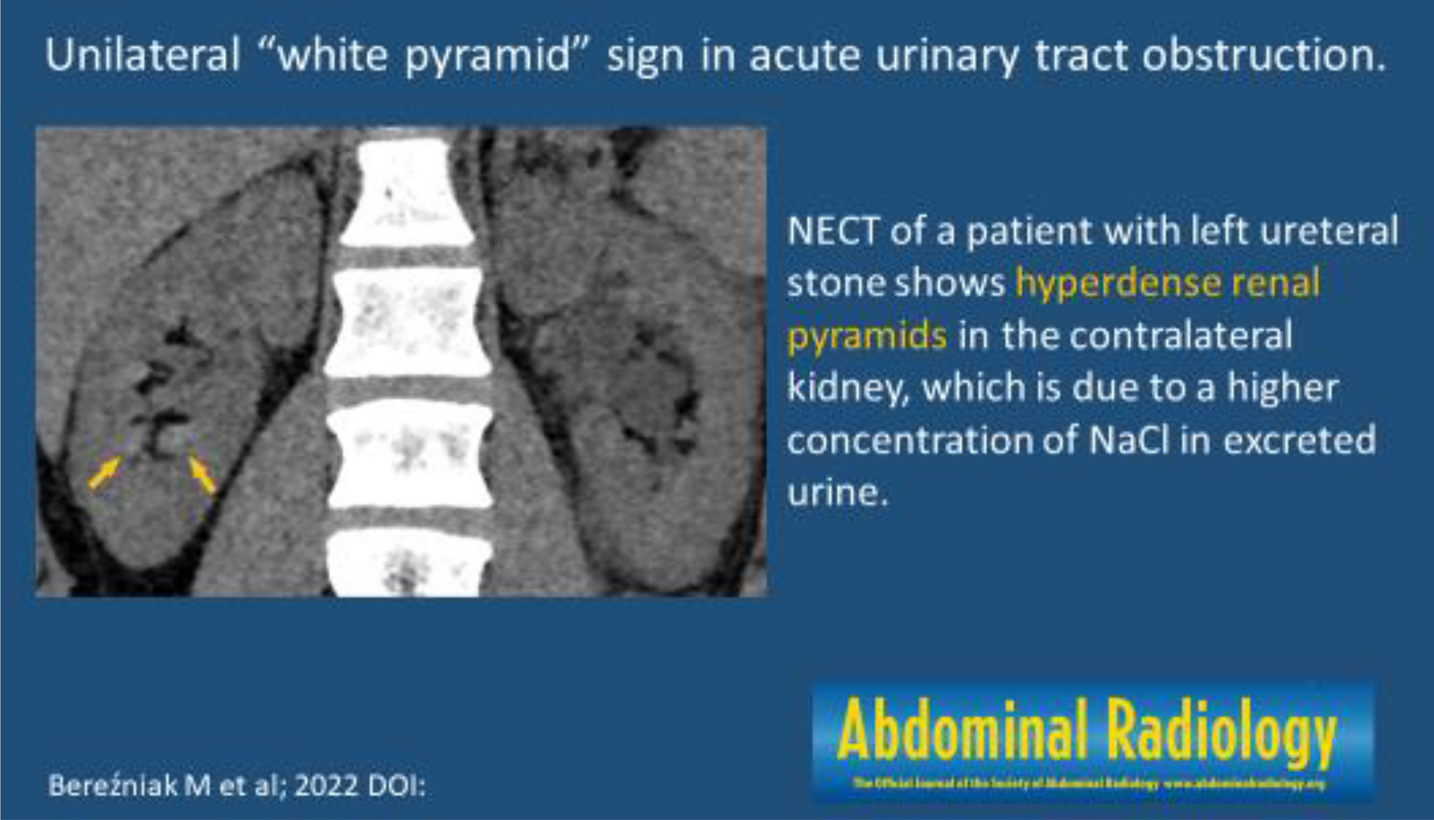 Unilateral “white pyramid” sign in acute urinary tract obstruction