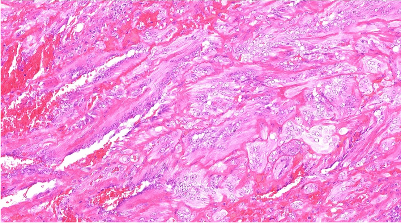 ACTIN::MITF tumor | - 9 reported cases (+1 in our files) - All F aged 15-75 years (median 40 years) - Extremities (7/10 cases), breast (1/10) | - Infiltrative dermal lesion with subcutaneous extension - Solid sheets of large epithelioid cells with clear cytoplasm, mild to moderate atypia and variably prominent nucleoli - Characteristic dissection of collagen bundles (checkerboard-like pattern) - Minimal mitotic activity (0-1 mitosis/10 HPF) | - S100 protein, tyrosinase, HMB-45, Melan A: variable positivity - Some cases negative for all these markers - 2/2 cases: SOX10 negative | - ACTB::MITF - ACTG1::MITF fusions | NED 3/3 cases (follow-up: 7-17 years) | - PEComa - Cellular blue nevus - Melanoma - Clear cell sarcoma |