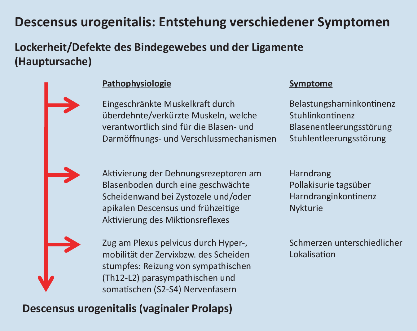 Pathophysiologische Pfade der Entwicklung eines vaginalen Prolaps und von unterschiedlichen Symptomen