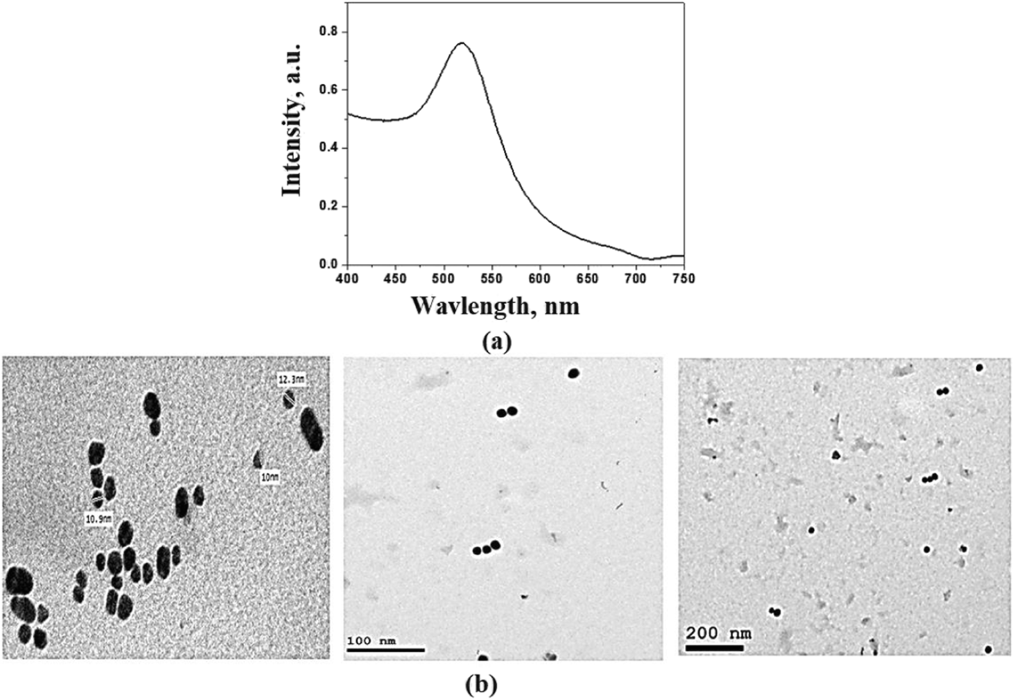 a UV–VIS absorption spectra and b TEM images of AuNPs