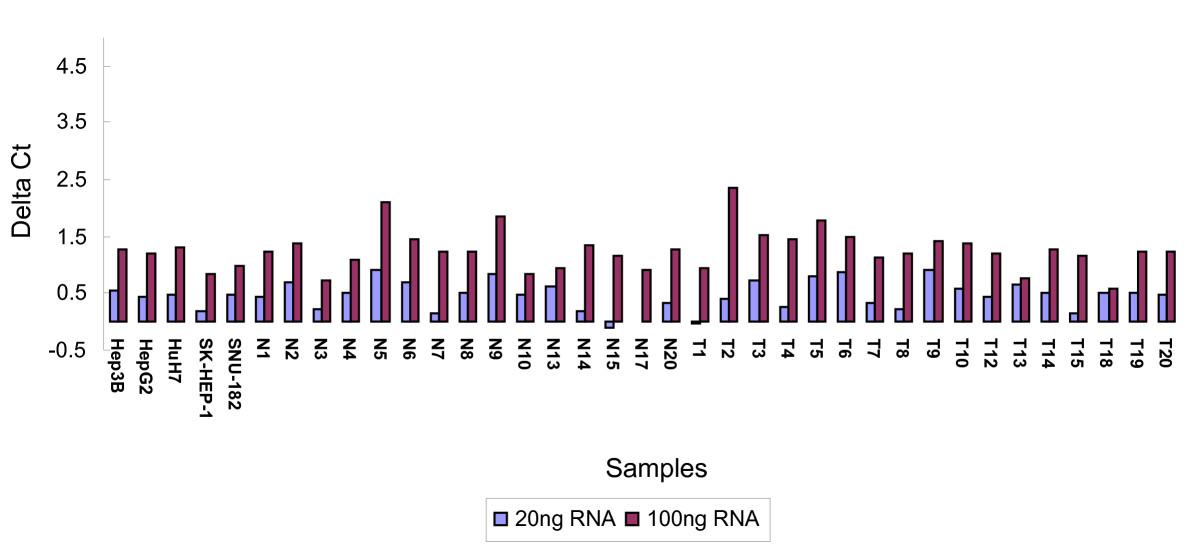HCC is the sixth most frequently diagnosed cancer and the third most common cause of cancer mortality in the world [13], but the molecular mechanisms of hepatocarcinogenesis, including gene expression variation, are not well understood. Therefore, the number of studies assessing global gene expression profiles of HCC has increased exponentially in recent years [14‐20], and the identification of optimal reference genes is necessary for correct gene expression profiling of HCC. In the current study, we validated the stability of six putative reference genes in liver cancer cell lines, tumoral tissues and adjacent non-tumoral tissues from 20 HCC patients. Two algorithms based on different strategies, geNorm and NormFinder, were used for data analysis.