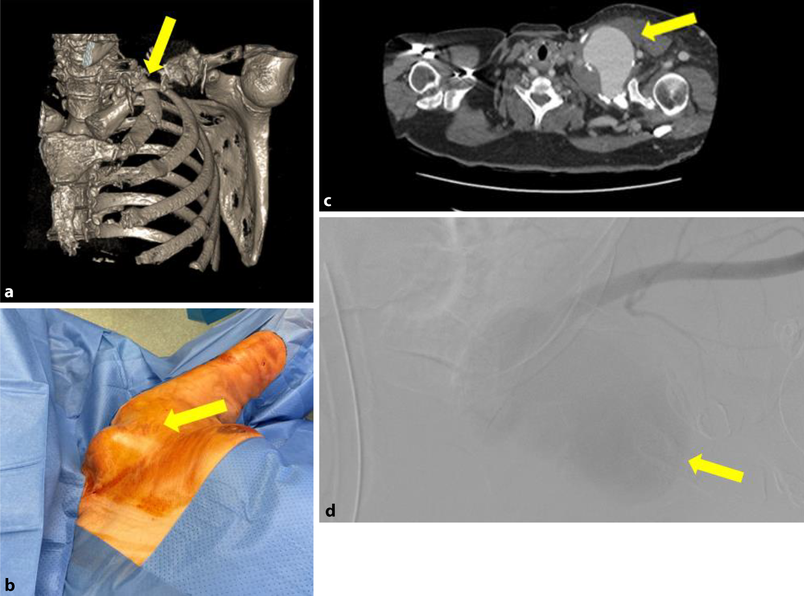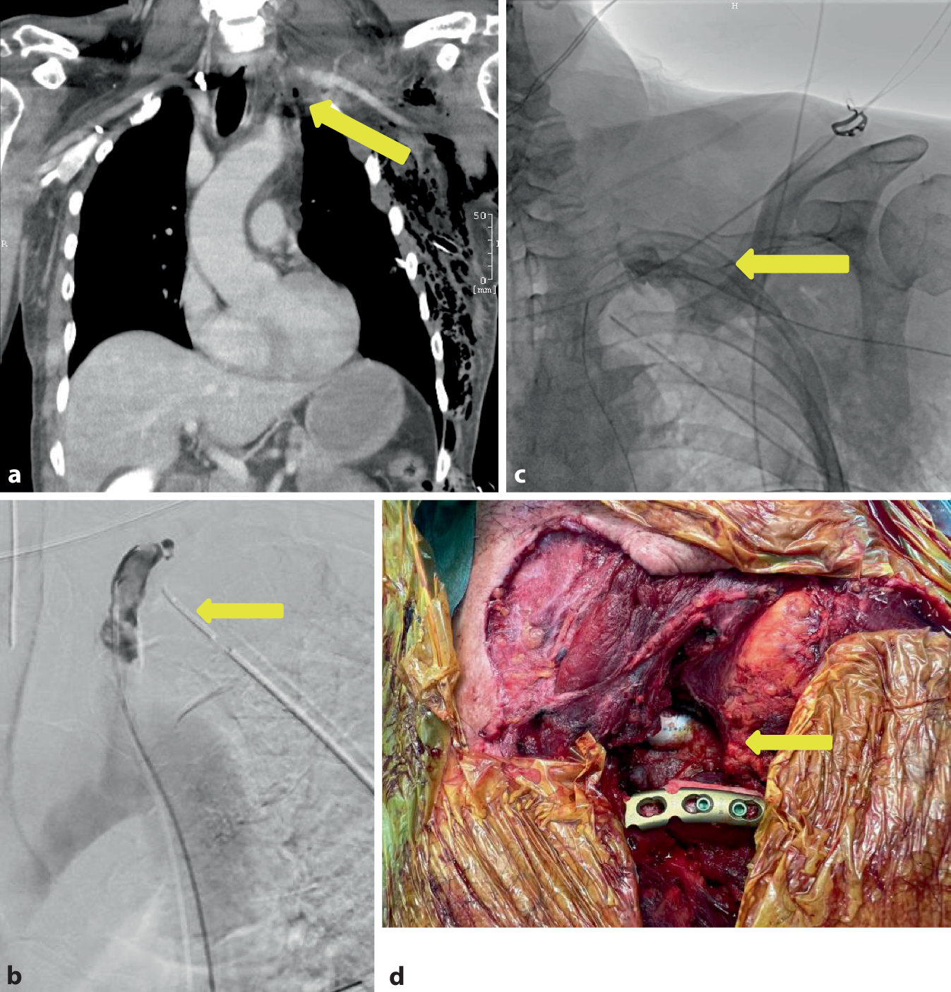 In den analysierten Fallberichten variierte die Zeit bis zur Diagnose des Pseudoaneurysmas der A. subclavia von unmittelbar bis Monate nach dem Trauma. Während bei den Symptomen Schmerzen und Schwellung im Vordergrund standen, war bei der klinischen Untersuchung in keinem Falle ein Pulsdefizit vorhanden. In der Hälfte der Fälle wurden die Pseudoaneurysmen rein endovaskulär, in 2 Fällen offen und in 2 Fällen im Sinne einer Hybridtechnik behandelt. Die kurze Übersicht bestätigt, dass die endovaskuläre Versorgung der Pseudoaneurysmen der A. subclavia eine sichere Versorgung erlaubt, jedoch auch die offene Versorgung und auch die Kombination mit einem endovaskulären Setting gebräuchlich ist [