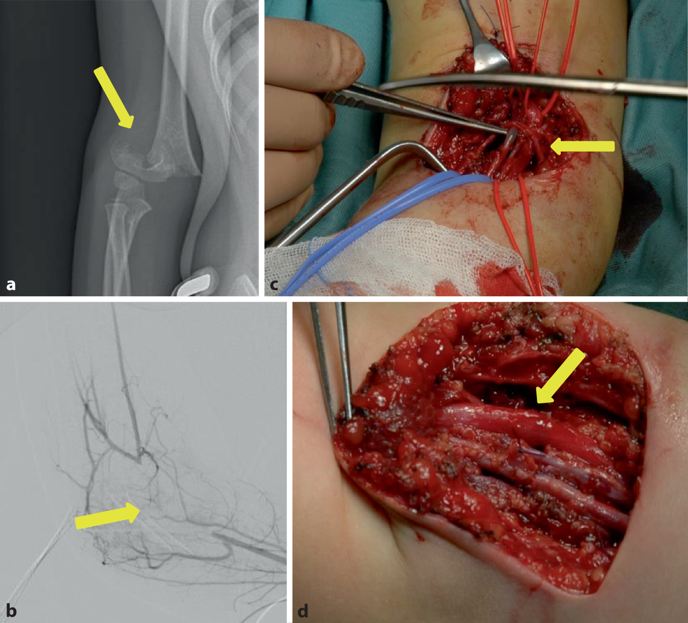 Unsicherheit kann entstehen, wenn bei kindlichen Frakturen das Gefäß zwar verletzt ist, aber keine relevante Ischämie vorliegt. Dann spricht man von der „pink pulseless hand“. Hier sollte zunächst die Reposition der Fraktur erfolgen. Häufig kommt es danach wieder zu einer Erholung des Pulses. Sollte nach 72 h kein Puls an der distalen betroffenen Extremität vorhanden sein, ist eine weiterführende gefäßchirurgische Diagnostik, ggf. offene Reposition und Gefäßrekonstruktion notwendig [