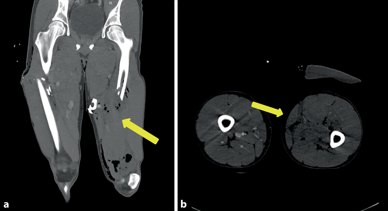 12]. Wenn technisch möglich, sollte temporär zunächst ein intravasales Shuntröhrchen verwendet werden, da neben der Reduzierung der Ischämiezeit auch eine Reduktion einer Infektion erfolgt und aufgrund einer Demarkierung avitaler Muskulatur ein adäquates Débridement erleichtert wird [
