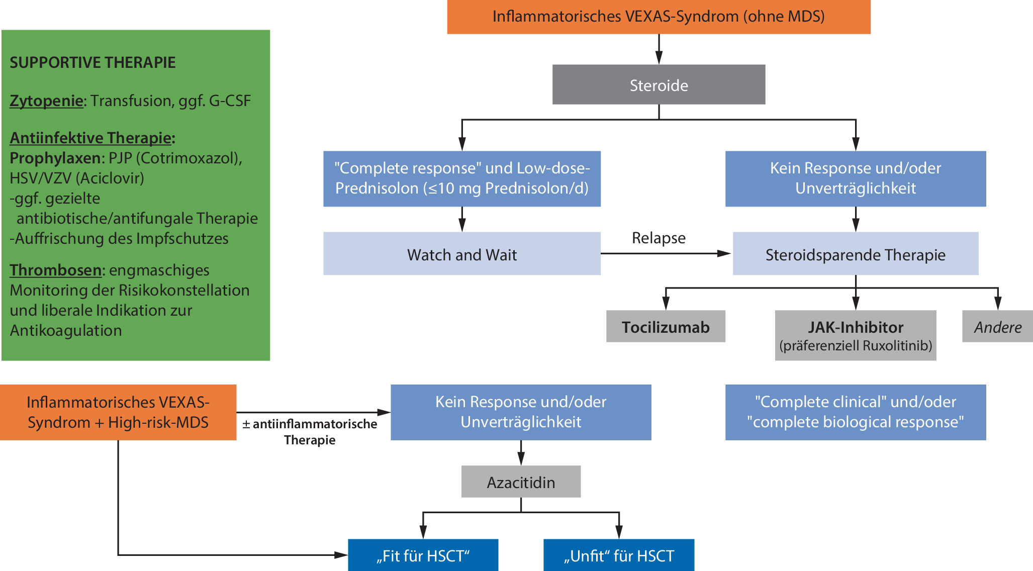 In Abb. 2 ist mein Vorschlag für den Behandlungsalgorithmus des VEXAS-Syndroms, adaptiert nach Heiblig et al., [8] aufgeführt.