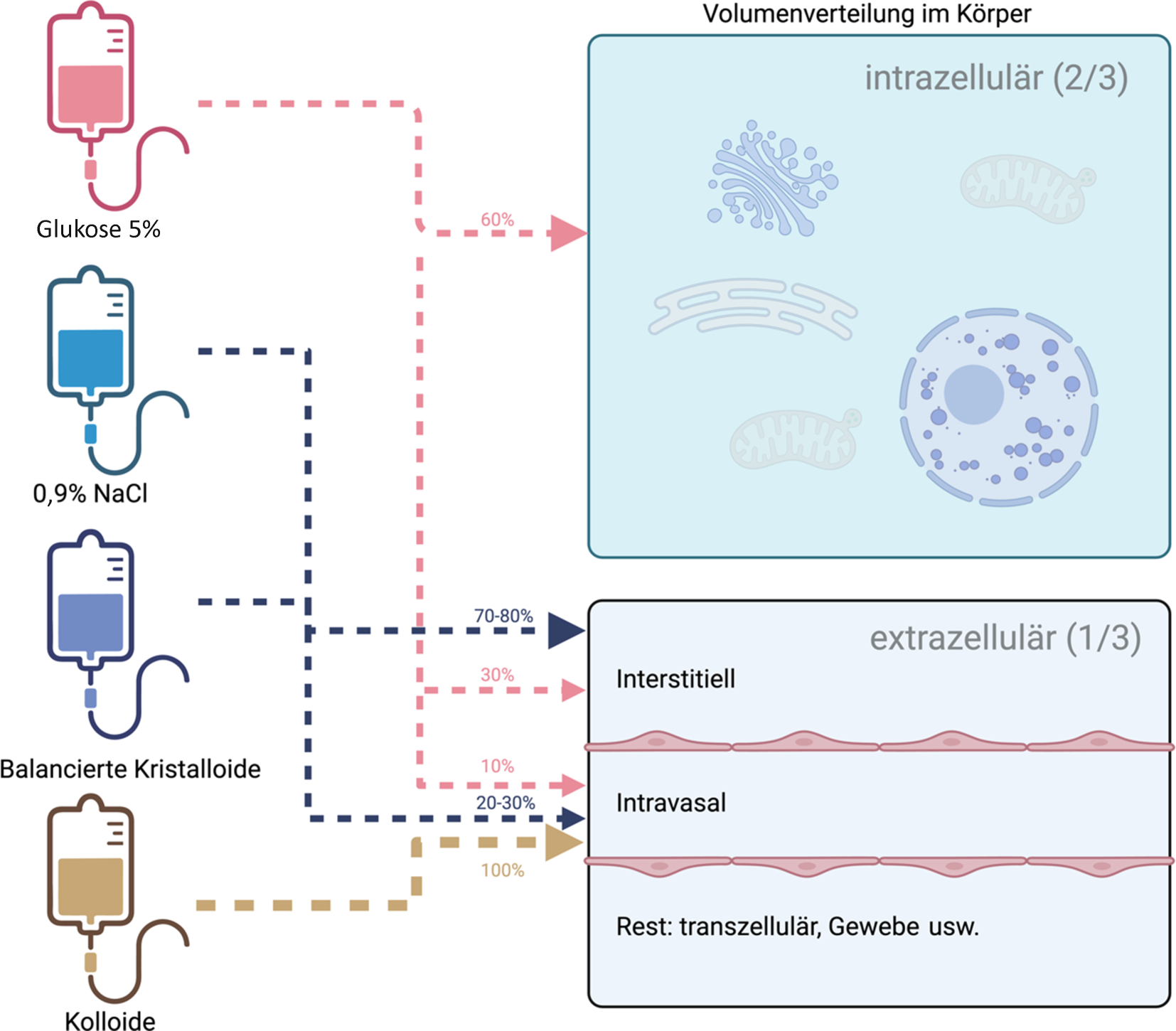 Kurz soll hier noch auf die Maintenance-Phase eingegangen werden, in der oftmals auch Kristalloide zum Einsatz kommen. Ziel dieser Phase ist es, nach initialer Stabilisierung das Extrazellulärvolumen zu erhalten und die Elektrolyte im Normalbereich zu halten [