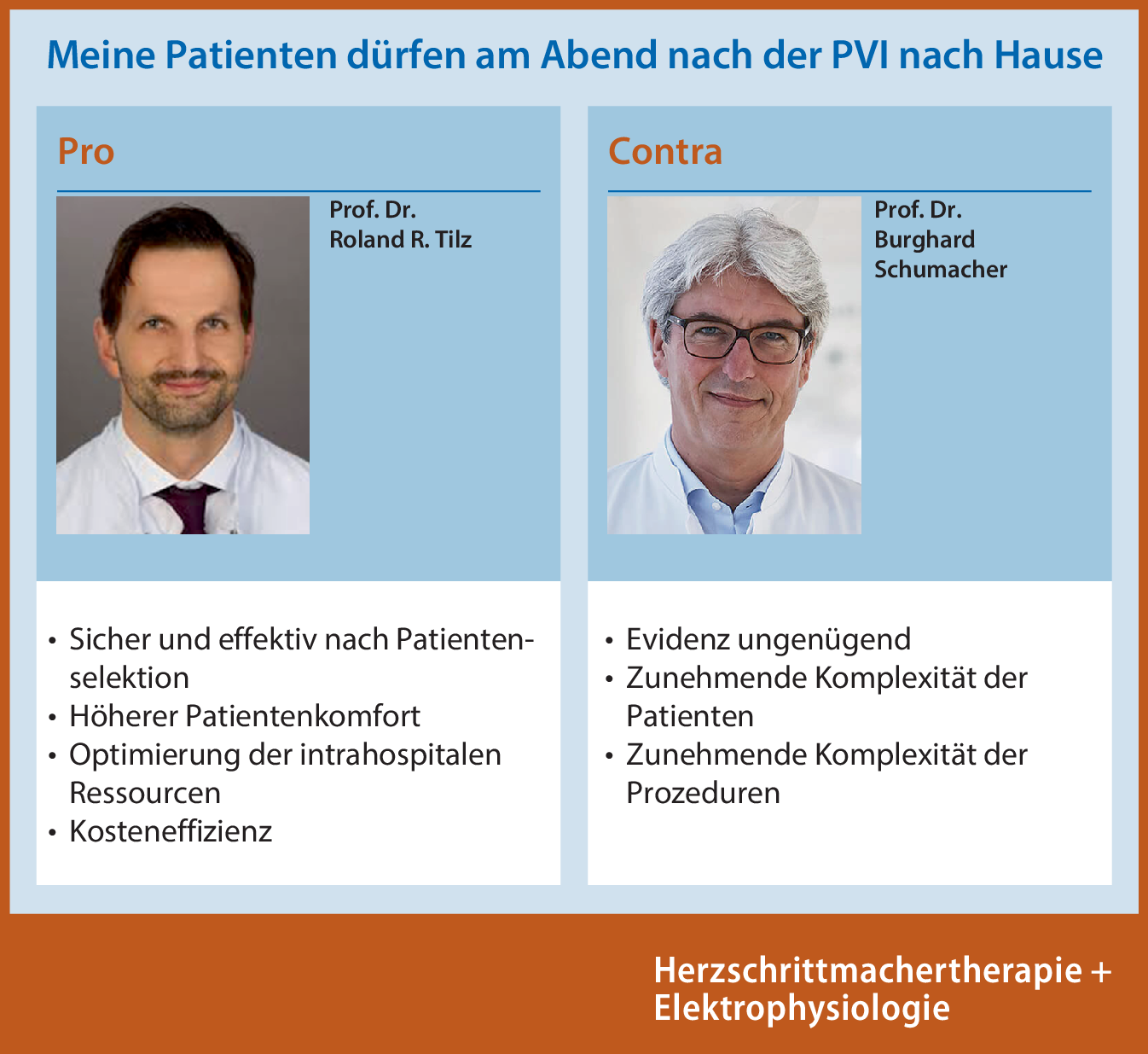 Vor dem Hintergrund der Optimierung finanzieller Ressourcen sowie mit Blick auf die Bedürfnisse einiger Patienten wird das Konzept des „same-day discharge“ nach Pulmonalvenenisolation (PVI) kontrovers diskutiert. Angesichts sehr unterschiedlicher Ablationsprozeduren, Begleiterkrankungen und Patientencharakteristika scheint eine generelle Empfehlung für oder wider eine stationäre Nachbeobachtung problematisch. Vielmehr steht die Frage im Vordergrund, bei welchen Patienten eine PVI sicher und effizient ambulant durchführbar ist und welche Patienten tatsächlich von einer stationären Behandlung profitieren. Hierzu sind sowohl prozedurale als auch patientenspezifische Kriterien von Bedeutung. Selbstverständlich gilt es auch strukturelle Voraussetzungen zu erfüllen. Die Entscheidung, ob eine PVI ambulant durchführbar ist, sollte schlussendlich weiterhin beim behandelnden Arzt liegen und gemeinsam mit dem Patienten getroffen werden.