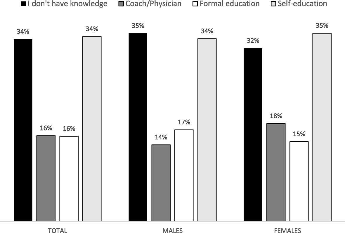 Subjective self-perceived knowledge on nutrition and dietary supplementation