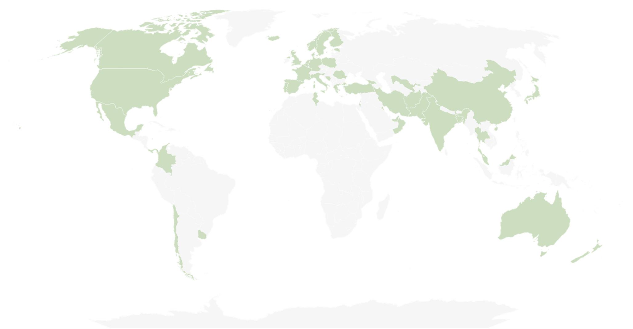 World map showing the countries of participating surgeons. Shaded areas represent countries from which survey responses were received